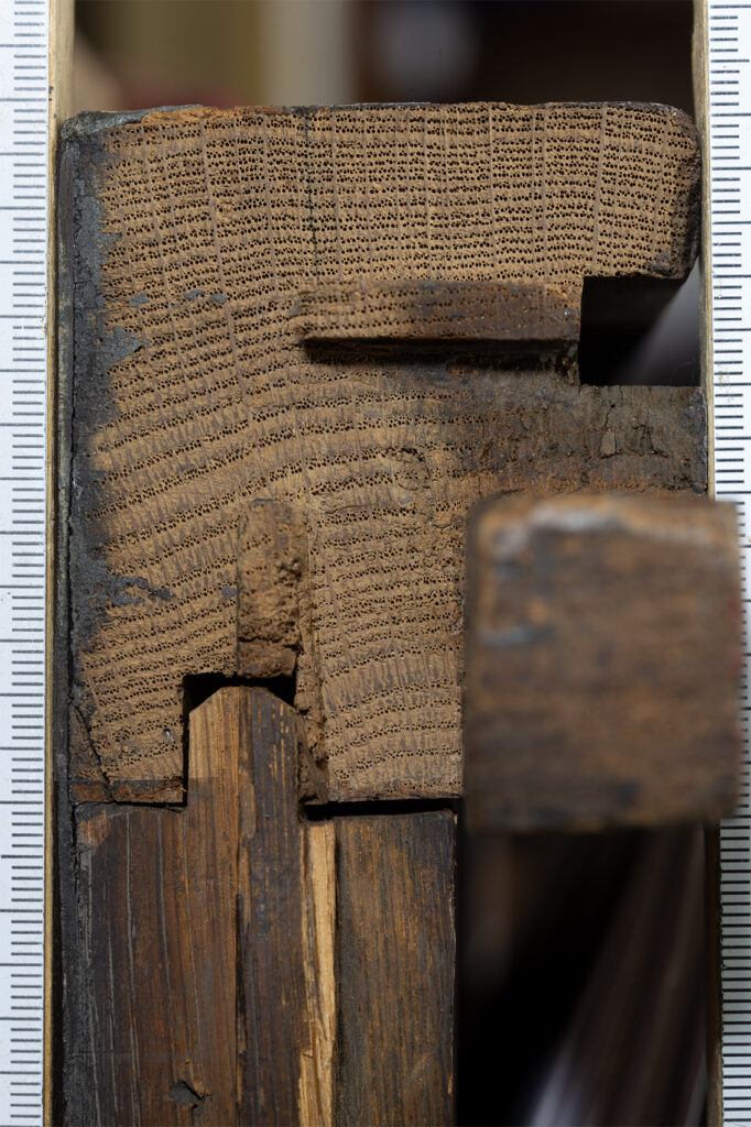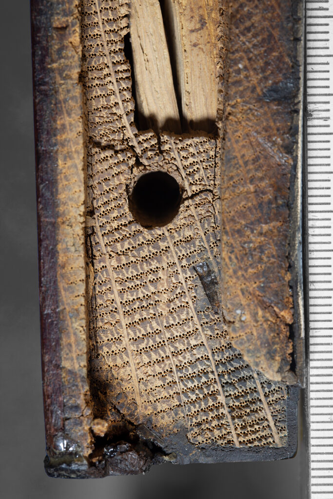 Ces études archéodendrométriques visent à caractériser les matériaux bois employés à la conception des meubles au travers d’examens xylologiques (identifications des essences employées), dendromorphologiques (débit et forme des bois), dendrochronologiques (datation par l’étude des cernes de croissance) et tracéologiques (étude des traces laissées par les outils sur le bois).