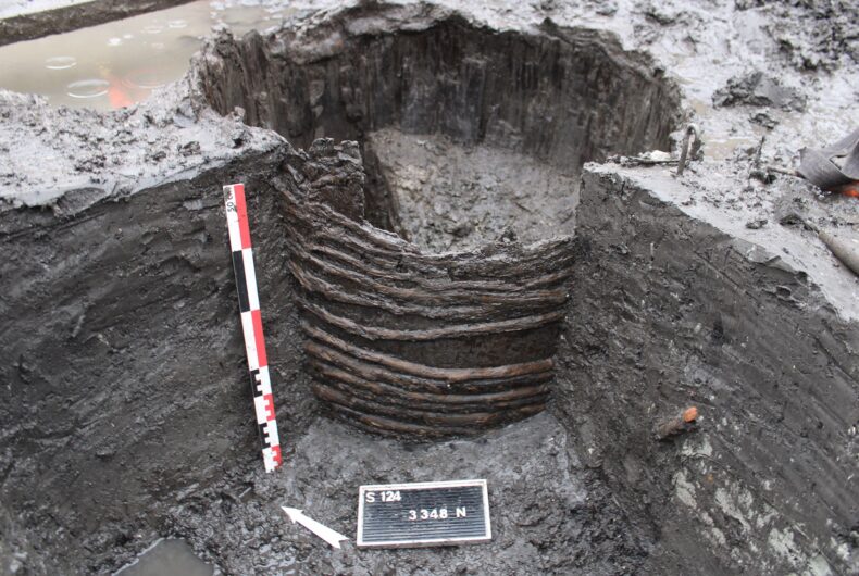 Les fouilles archéologiques préventives menées en octobre 2024, sur le site archéologique 2023-048/594-22 de Grevenmacher/Potaschberg (L) ont conduit à la mise au jour d’un important lot de bois gorgés d’eau, inventoriés, conditionnés et stockés par le service de conservation de l’INRA (L-Bertrange). Les différents vestiges se présentent sous la forme de tronçons fendus de 20 à 140 cm de longueur, reposant horizontalement au sein d’une même unique couche archéologique.